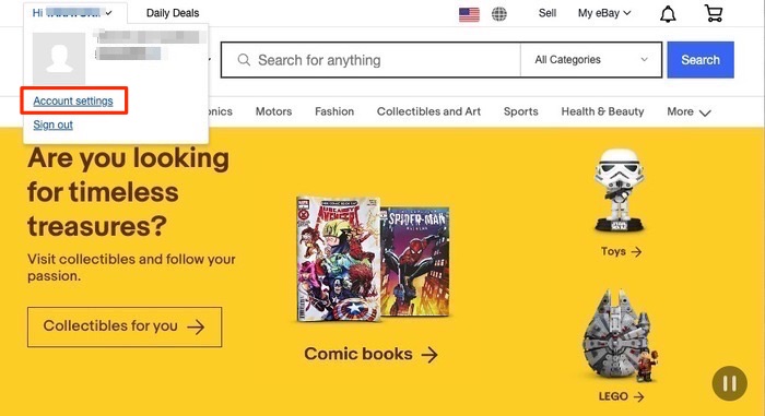 まずは「Hi アカウント名」の下矢印をクリックして、「Account Setting(アカウント設定)」を選択してください。