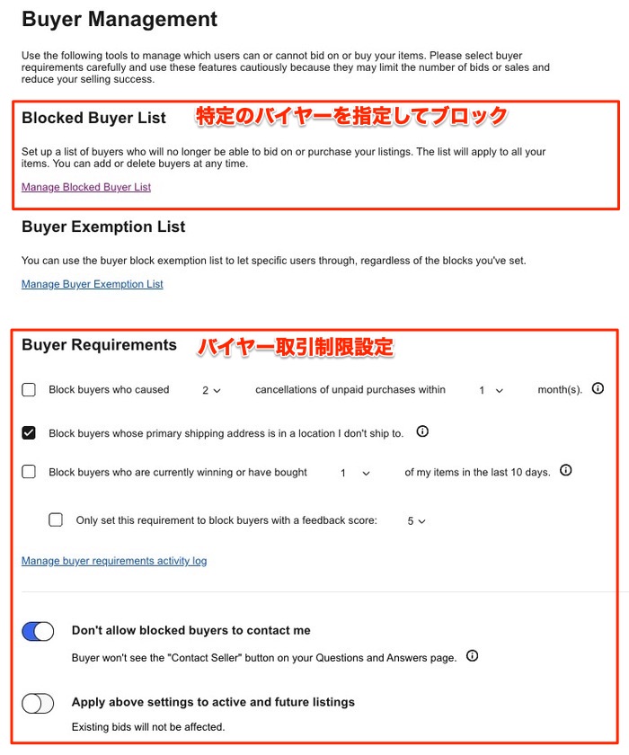 関わりたくないバイヤーはブロックすることで、eBayを楽しんで運営しましょう。