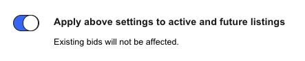 最後に「Apply above settings to actibe and future listings(設定を現在のリストとこれからの出品リストに適用)」をオンにして、設定は完了です