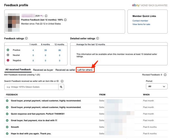 バイヤー自身の評価が良いからといって安心はできません。バイヤーがセラーにあてたフィードバックまでしっかり確認しましょう。