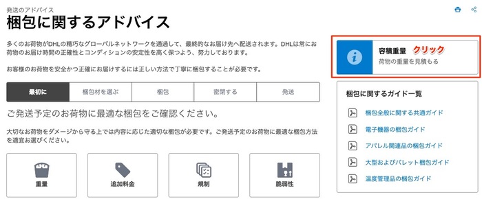 DHLの送料の算出には、容積重量か実重量のどちらか重い方が採用されます。