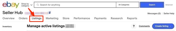 セラーハブ画面上のバーから、「Listings」を選択します。