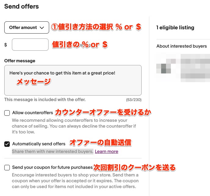 eBayでの売り上げを伸ばすために、オファー送信は非常に有効な手段です。