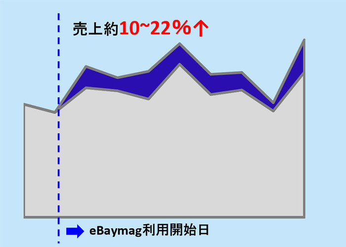 ※eBaymagを開始した前後の販売者様売り上げ実績データ参照(eBay Japan調べ)