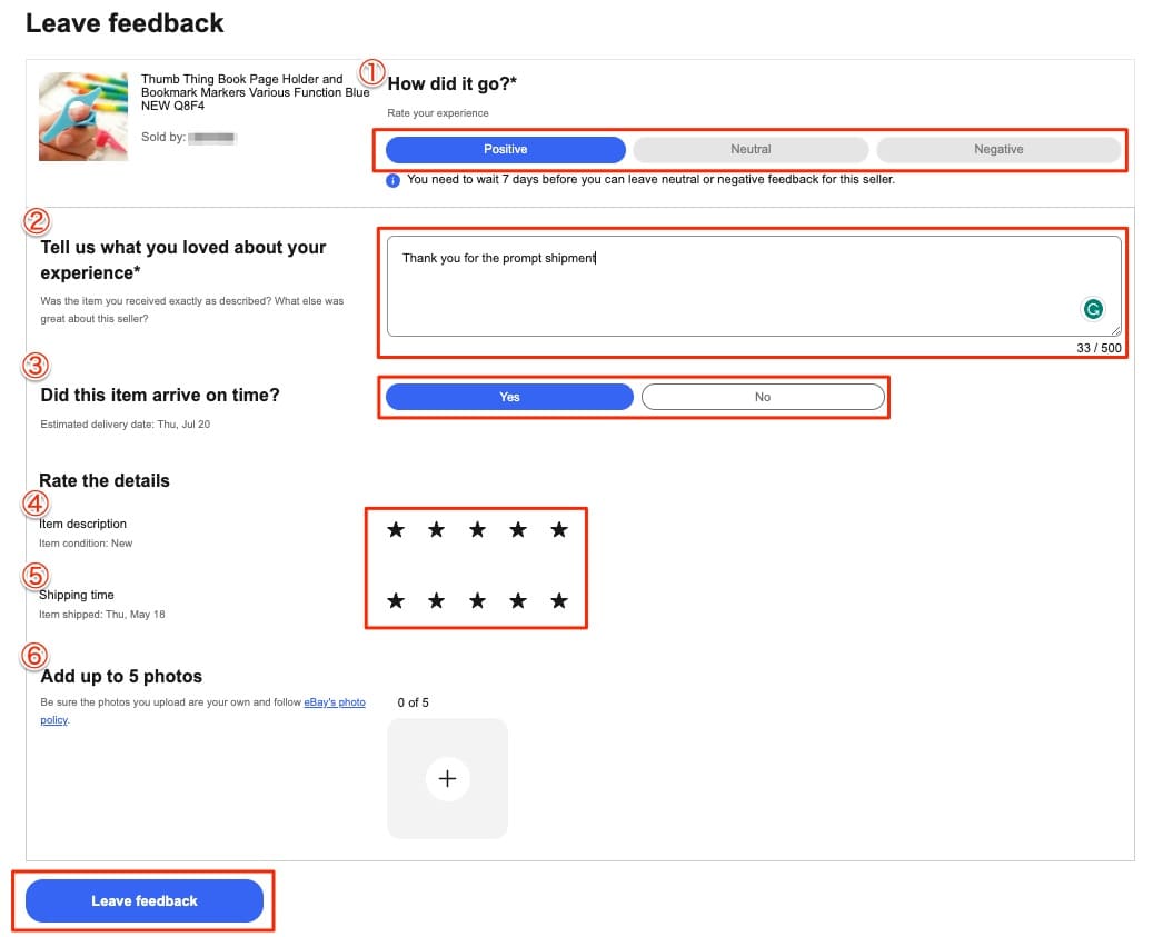 同じセラーからの購入の場合には1週間以上経過しないと評価をもらうことができません。