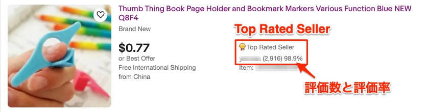 Top Rated Sellerのバッジが付いていて評価率が95%以上のセラーだと安心ですね。
