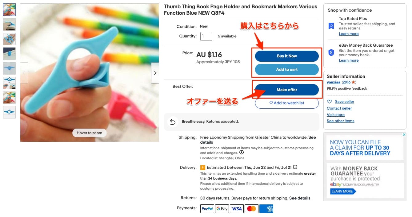 eBayで売っているものを見ながら購入の流れを理解することで、あなたが販売するときに必ず役に立ちます。