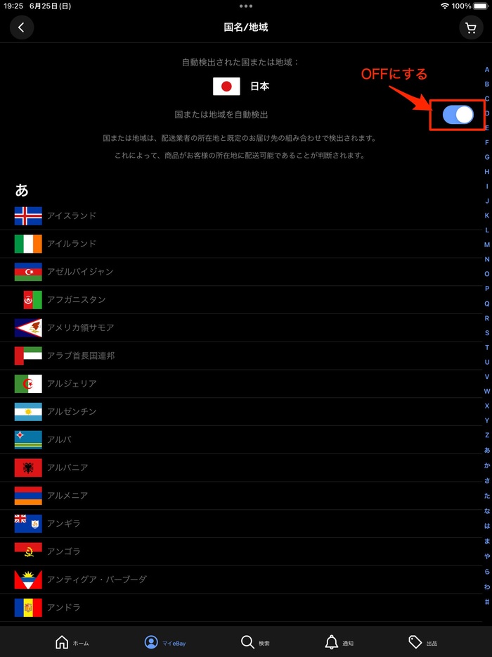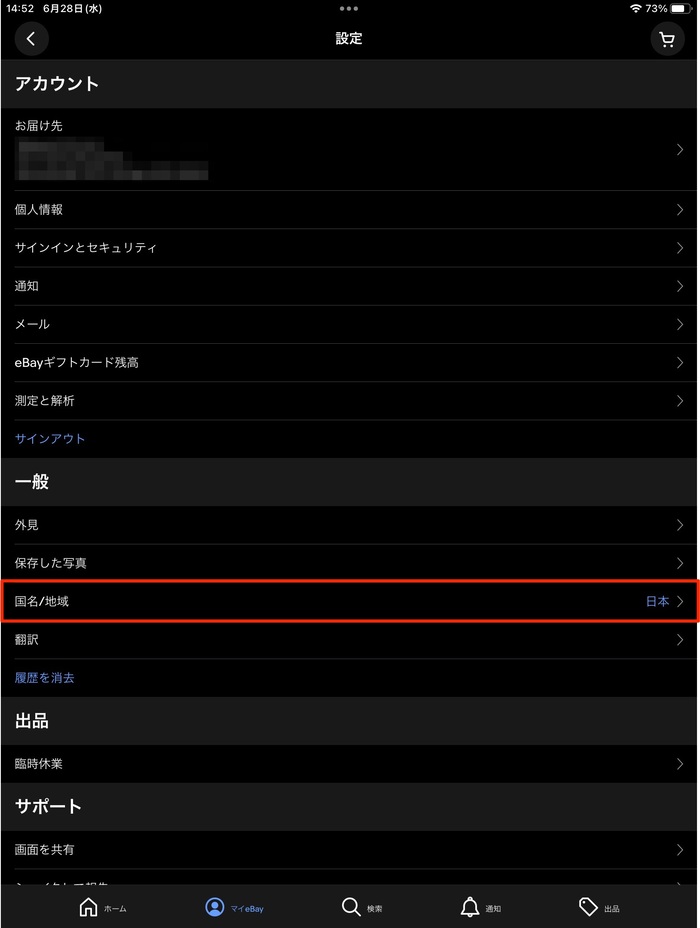 eBayアプリは自動的に国や地域を検出し、言語が設定されます。