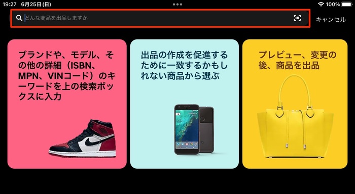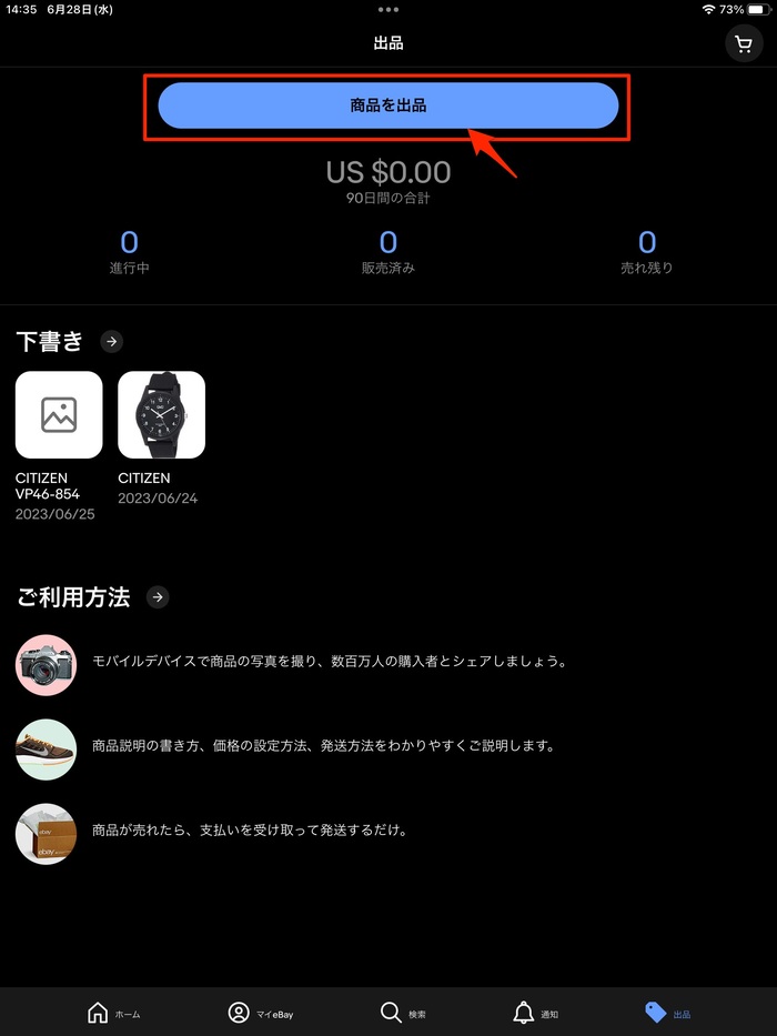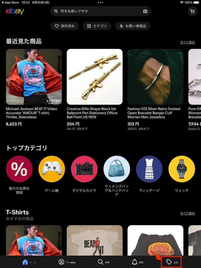 eBayアプリは、購入だけではなく、出品も可能です。