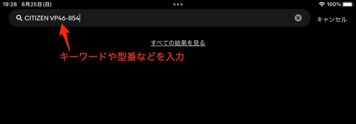 検索バーにキーワードや型番を入力します。