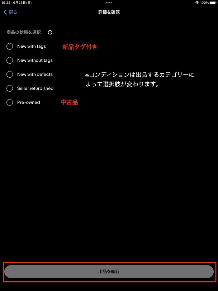商品のコンディションを選択します。