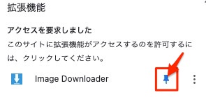 これまでに追加してきたChromeの拡張機能が表示されます。「Image Downloader」横のピンマークをクリックすれば、右上に表示されるようになり、設定完了です。
