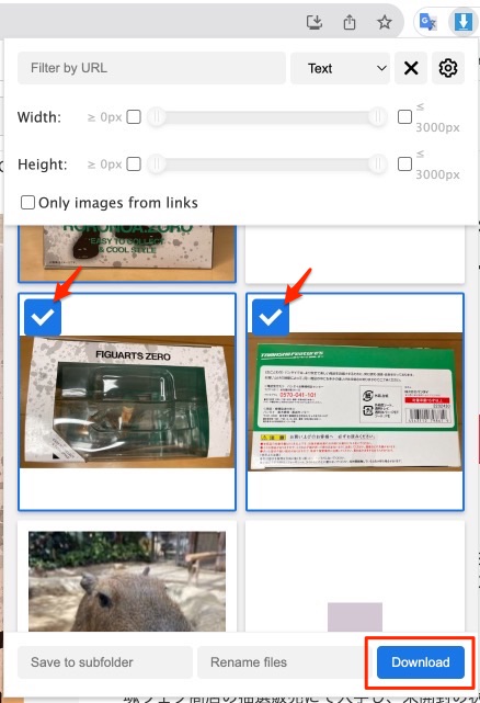 必要な画像にチェックマークを入れて、「Download」ボタンをクリックすることで一括で保存が可能になります。