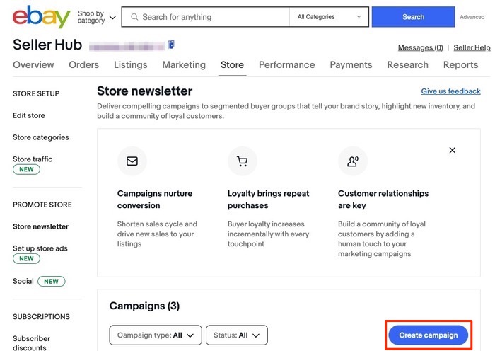 eBayのストア機能では、バイヤーにあなたのストアのニュースレターを購読してもらうことができます。