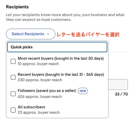 ニュースレターを送ってほしくないバイヤーには届きませんので、安心してくださいね。