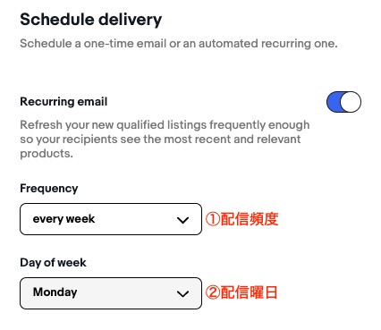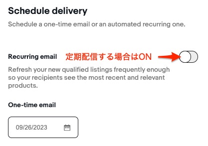 まず、「Schedule delivery」の画面が表示されたら「Recurring email(定期配信)」をONにしてください。