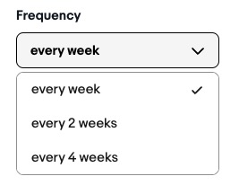 ここで、週刊、2週間に1回、月刊の配信頻度を選ぶことができます。
