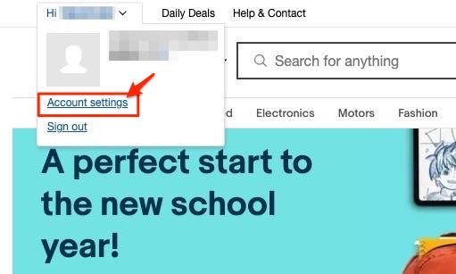 まずは、セラーハブページ左上の「Hi 〇〇(アカウント名)」横の矢印をクリックして、「Account setting」を選択してください。