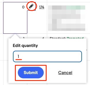 在庫を補充したい商品のリストの「Available quantity」にカーソルを合わせてください。