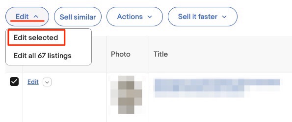 チェックボックスにチェックが入っているのを確認したら、画面上の「Edit」ボタンから「Edit selected」を選択してください。