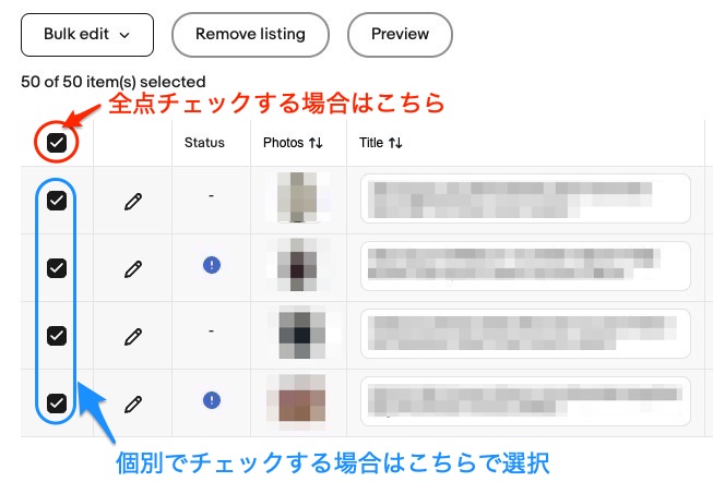基本的にコンディションが異なる1点ものはsoldを積み上げずに販売することをオススメします。