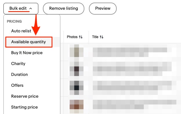 次に「Bulk edit」ボタンから、「Available quantity」を選択します。