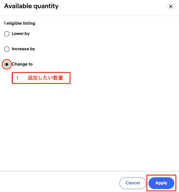「Change to」にチェックを入れて、追加したい数量を入力しましょう。
