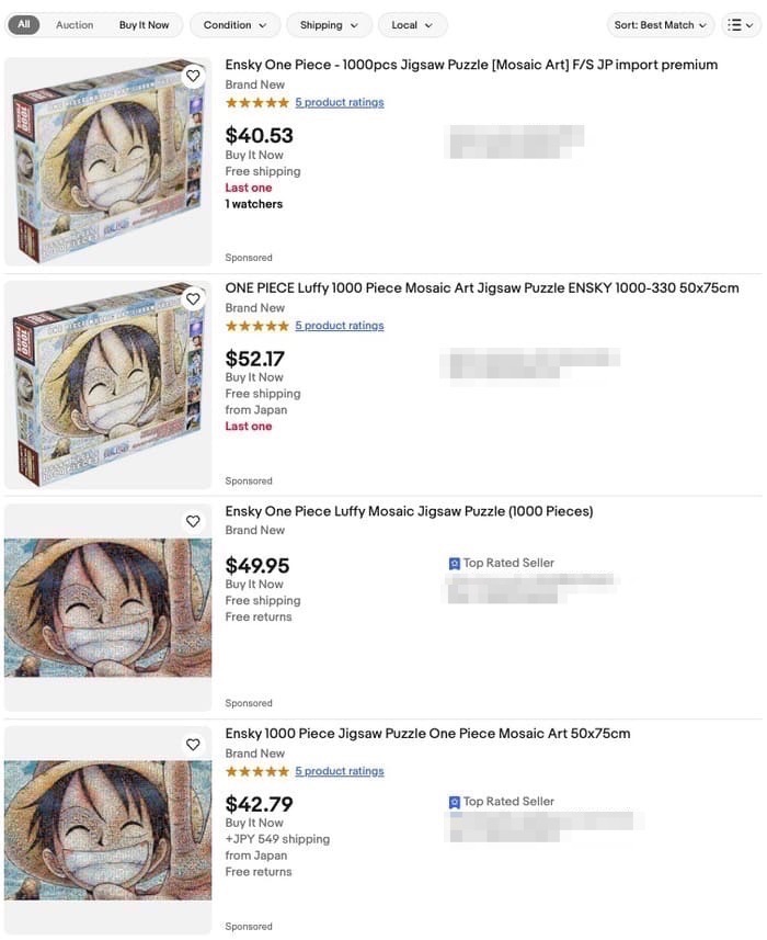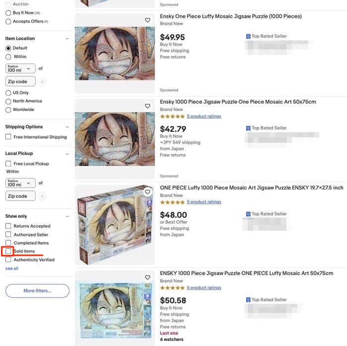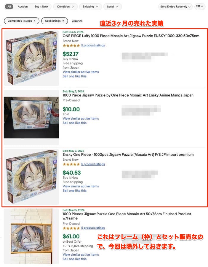ここではジグソーパズルということは一時忘れてください。自分の商品が新品である場合、相場の上限近くで価格設定することもできますが、中古品であれば相場以下に設定するのが良いでしょう。